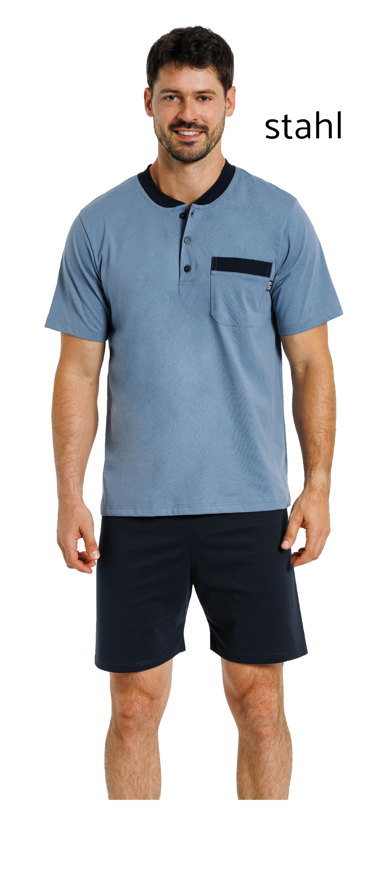 Langer Schlafanzug für Herren, hergestellt aus 100% Baumwolle aus kontrolliert biologischer Tierhaltung (kbA) in Single-Jersey-Qualität. Das Shirt hat eine Knopfleiste, Brusttasche und Bündchen. Die Hose hat einen umsäumtem Gummibund. Der Schlafanzug ist GOTS zertifiziert.
