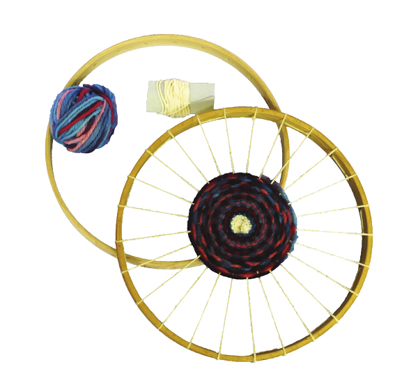 Das Set beinhaltet Kettfaden, Nadel, Anleitung und 100% Bioland Schafschurwolle aus kontrolliert biologischer Tierhaltung (kbT), die ausreichend für eine Rahmenfüllung ist.