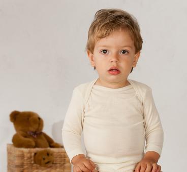 Dieser Schlupfhemd mit langem Arm ist GOTS zertifiziert. Es besteht zu 70% aus Wolle aus kontrolliert biologischer Tierhaltung (kbT) und zu 30% aus Seide. Farben: uni rot, uni pink