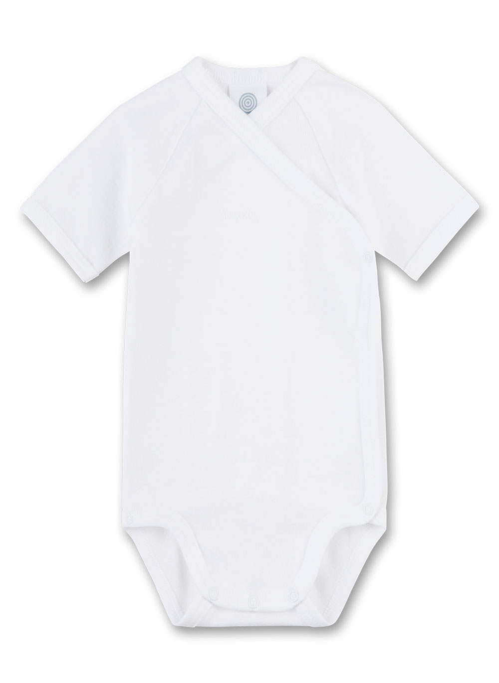 Dieser Wickel-Body mit halblangem Arm wird zu 100% aus Baumwolle aus kontrolliert biologischem Anbau (kbA) Farbe: weiß