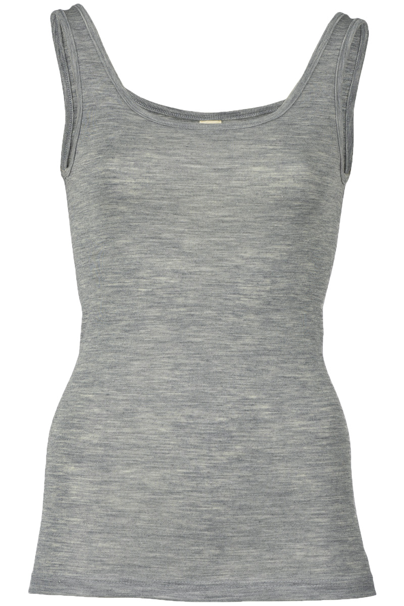 GOTS zertifiziertes Achselhemd mit elastischem Einfassband, hergestellt aus 70% Merinowolle aus kontrolliert biologischer Tierhaltung (kbT) und 30% Seide.