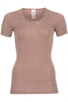 Kurzarm-Hemd mit Rundhals-Ausschnitt, hergestellt aus 70% Wolle aus kontrolliert biologischer Tierhaltung (kbT) und 30% Seide. Das Shirt ist nach strengen IVN Standards zertifiziert.
