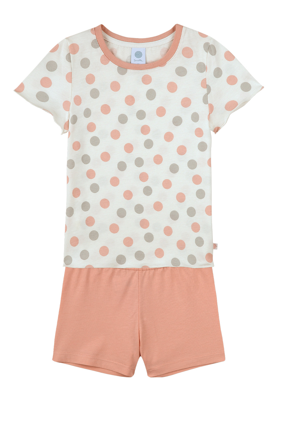 100% Bio-Baumwolle, trocknerbeständig, Ärmel und Saum mit Rollsaum für eine sanft wellige Optik. Farben: weiß gepunktet/rosé