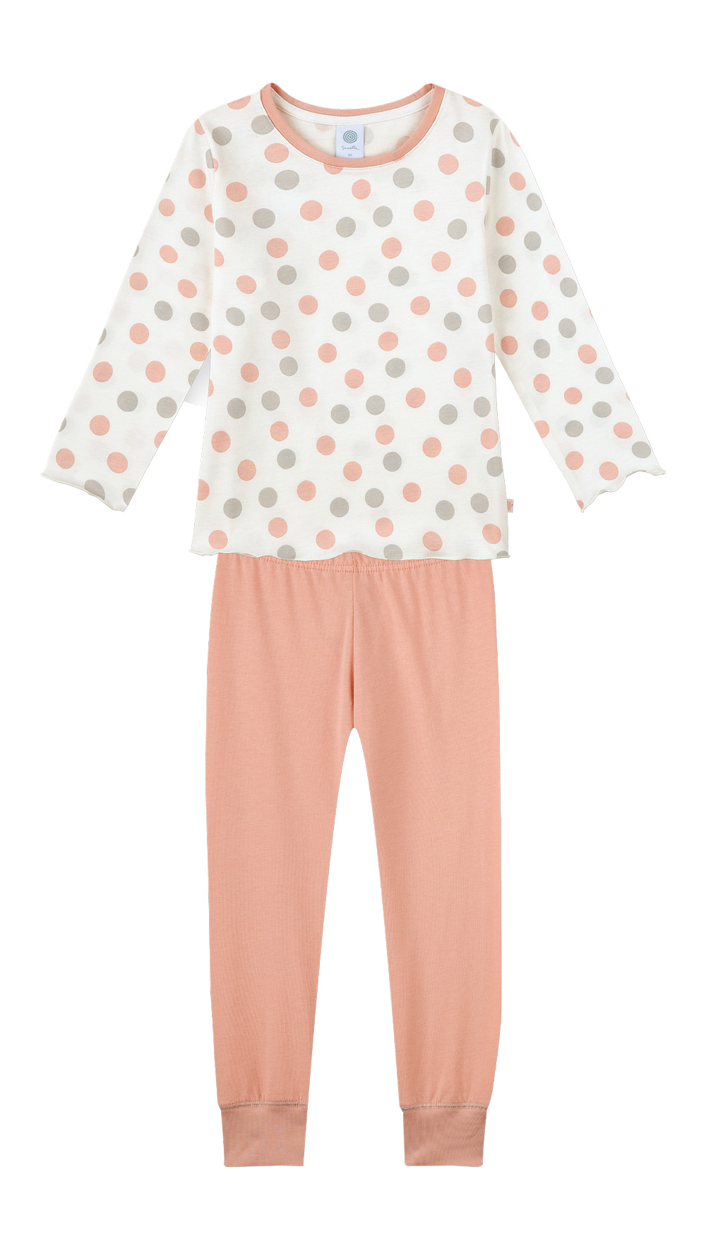 100% Bio-Baumwolle, trocknerbeständig, Ärmel und Saum mit Rollsaum für eine sanft wellige Optik. Farben: weiß gepunktet/rosé