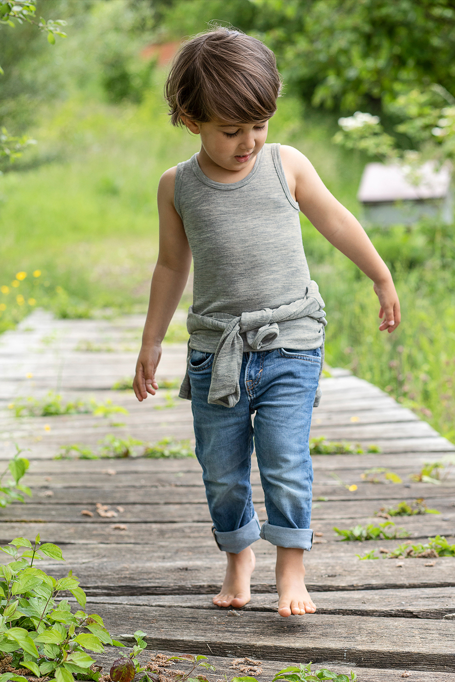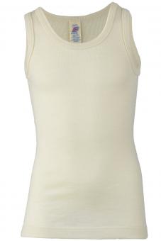 Unterhemd ohne Arm, hergestellt aus 70% Merinoschurwolle aus kontrolliert biologischer Tierhaltung (kbT) und 30% Seide. Das Hemd ist GOTS zertifiziert. Farben: marine, orchidee, natur und hellgrau melange