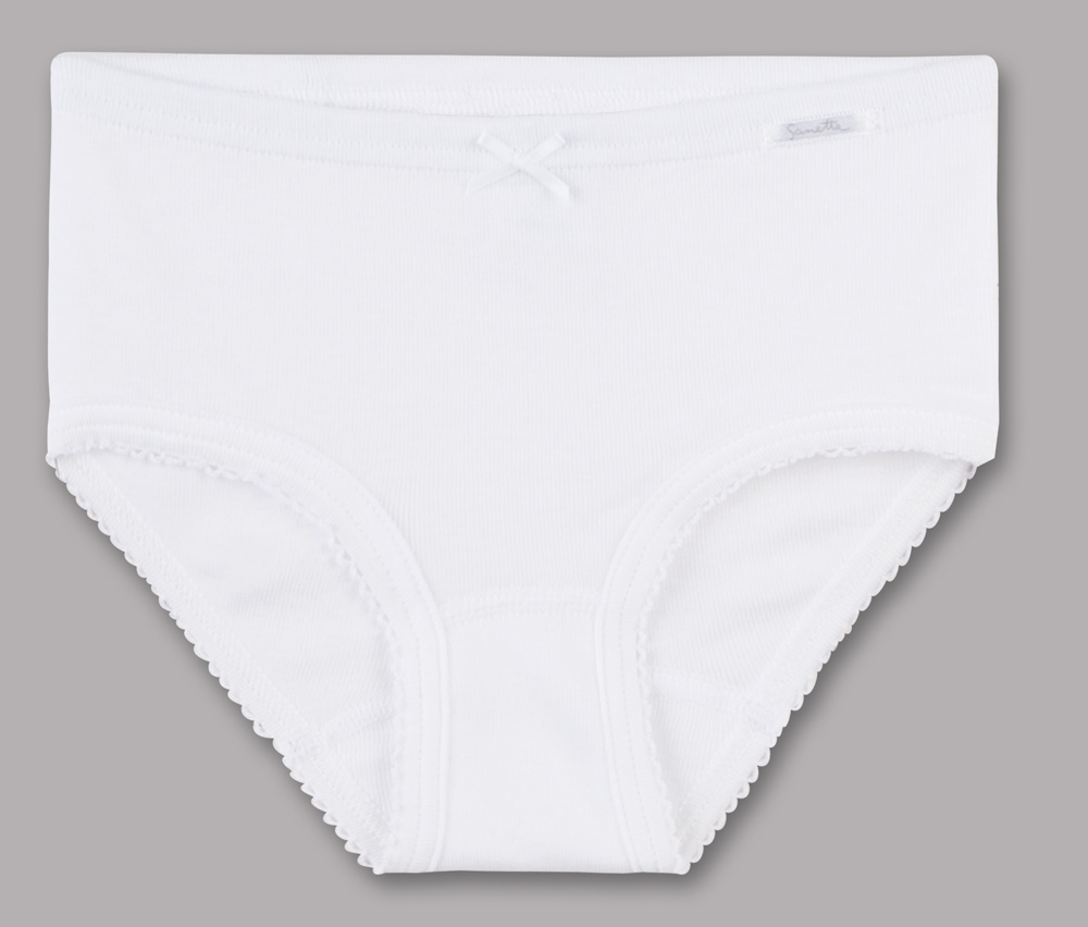100% Bio-Baumwolle, trocknerbeständig, kleines Schleifchen am Bund und Crochetta-Ziernaht an den Beinabschlüssen. Farbe: weiß