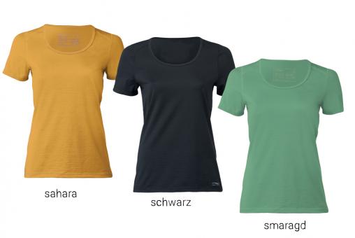 GOTS zertifiziertes Sport-Shirt für Damen, hergestellt aus 70% Wolle aus kontrolliert biologischer Tierhaltung (kbT), 28% Seide und 2% Elasthan. Aufgrund der Materialzusammenstellung und spezieller Herstellungsverfahren muss das Shirt nicht so häufig gewaschen werden, sondern regeneriert beim Lüften an der frischen Luft. Das Shirt hat einen lockeren Schnitt und eine leichte Qualität. Maschinenwaschbar mit Wollwaschmittel bei 40 Grad.