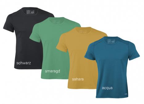T-Shirt in leichterer Qualität und mit lockerem Schnitt, hergestellt aus 70% Wolle aus kontrolliert biologischer Tierhaltung (kbT), 28% Seide und 2% Elasthan. Das Shirt ist GOTS zertifiziert. Aufgrund der Materialzusammenstellung und spezieller Herstellungsverfahren muss es nicht so häufig gewaschen werden, sondern regeneriert beim Lüften an der frischen Luft. Mit Wollwaschmittel bei 40 Grad maschinenwaschbar.