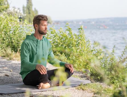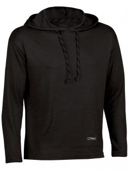 Wind- und blickdichter Kapuzen-Pullover in dickerer Qualität und lockerem Schnitt, hergestellt aus 70% Wolle aus kontrolliert biologischer Tierhaltung (kbT), 28% Seide und 2% Elasthan. Aufgrund der Materialzusammenstellung und spezieller Herstellungsverfahren muss er nicht so häufig gewaschen werden, sondern regeneriert beim Lüften an der frischen Luft. GOTS zertifiziert.